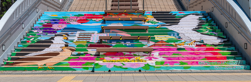 毎年5月4日に行われる「流山グリーンフェスティバル」では、流山市から直接依頼を受け、ステップアートのデザイン貼り付けからイベント企画運営までを全て学生が行います。