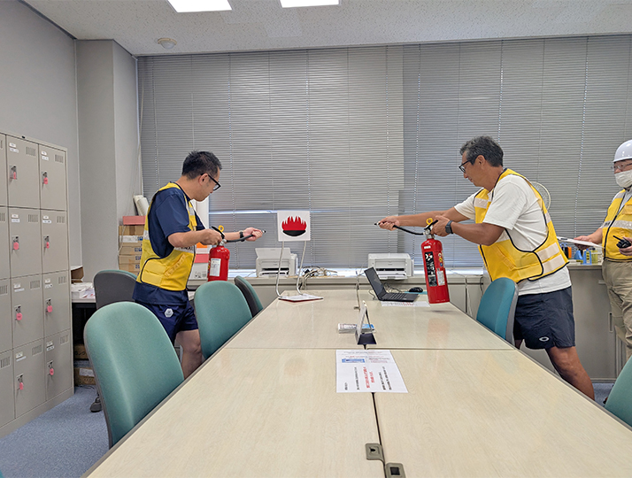 9月8日(月)は、全体訓練後に部分訓練を実施した。訓練内容は消火設備の使い方であった。