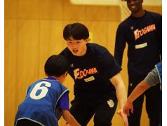 男女バスケットボール部、女子バレーボール部、フットボールクラブの部員とスタッフが中心となり、スポーツを通じた地域との連携交流を進めています。地域の子どもたちを対象とした競技力向上のクリニックを定期的に開催するほか、近隣地域で行われる大会の運営協力などを行っています。