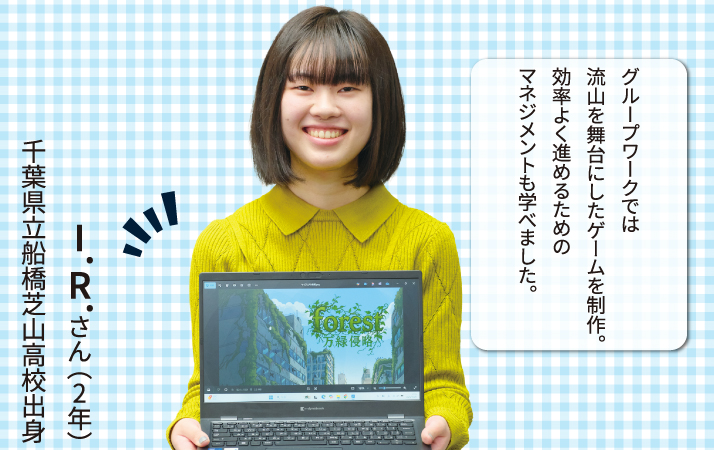 がら学んでいます。制作の基本となるグループワークでは進捗管理やお互いのフォローが不可欠で、スケジュール通りに進める難しさを痛感。特に印象的だったのは、時には「実現が難しい要素を切り捨てる」という決断も必要だということ。クリエイティブな面や完成度だけでなく、期限内に達成させるというビジネスとしての厳しさと、それをチームで乗り越えていくおもしろさを実感する学びになりました。