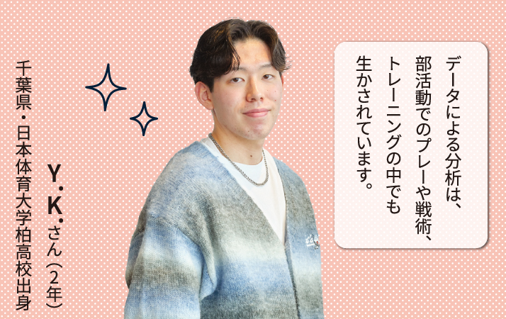 子どもの頃からスポーツを続ける中で興味を持っていたのは、指導者ごとに異なるコーチングの方法。「スポーツ指導者論」では子どもへのアプローチ法を学び、小学校のバスケットボール大会運営をサポートする機会も。先生方の指導や子どもたちの反応が間近に見られ、とても勉強になりました。一方、「演習・実習」では「4ファクター」という指標を用いたチーム分析を実践。所属している男子バスケットボール部の強みや弱点を、客観的な数値で捉える視点を得ることができました。