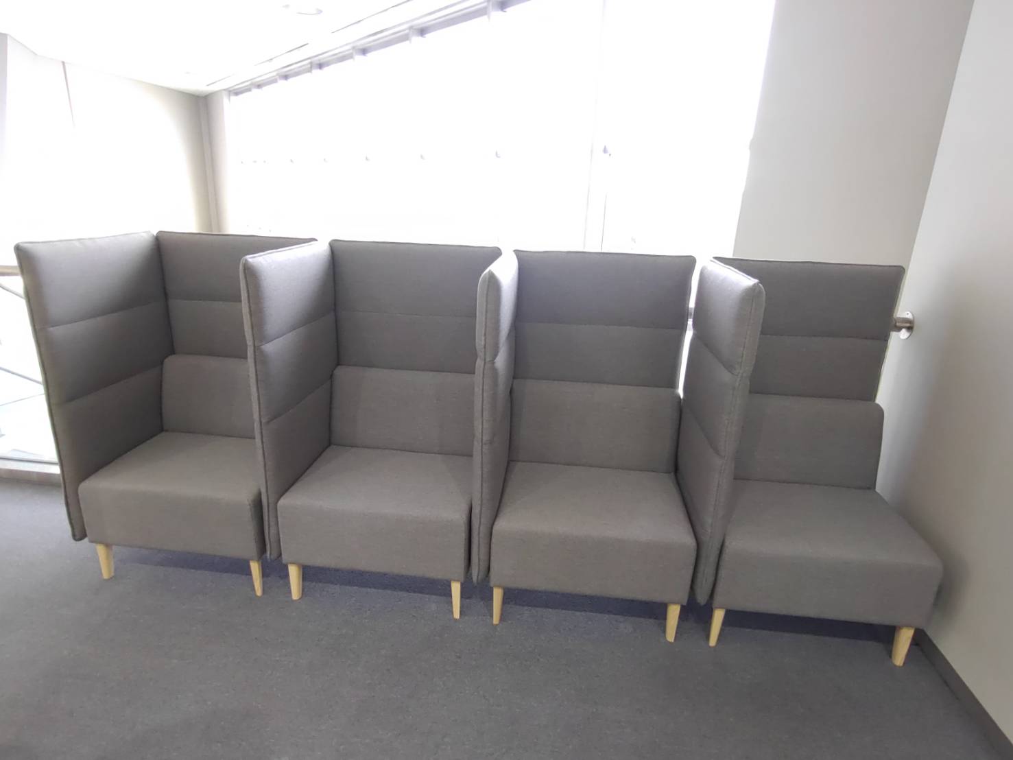 片面と背面に高いパネルが設けられており、周囲の視線を遮り、吸音効果があります。ぜひ一度ご利用ください。