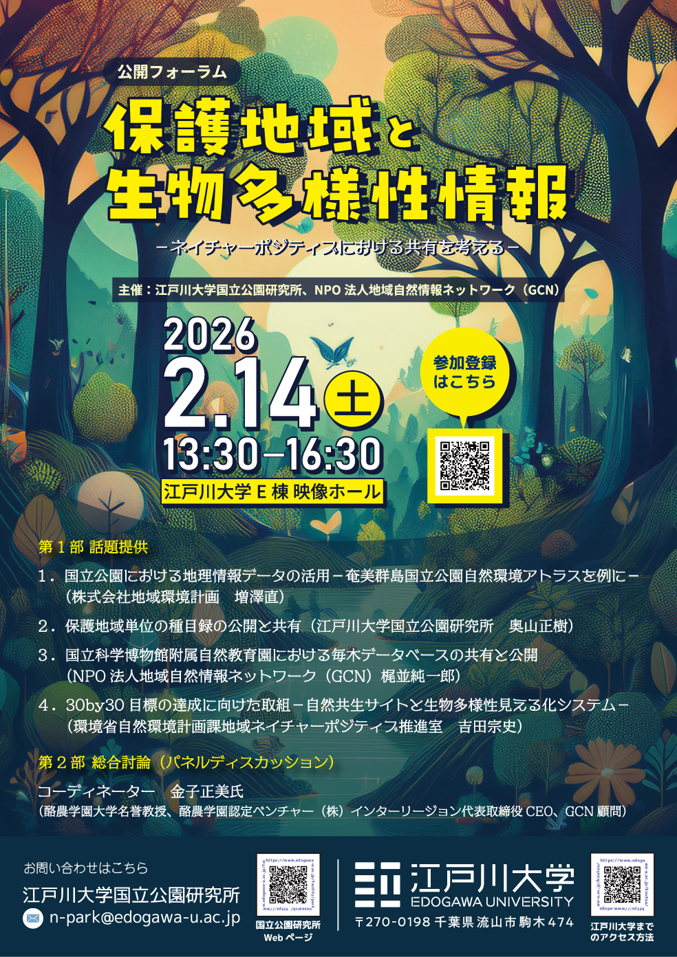主催:江戸川大学国立公園研究所、NPO法人地域自然情報ネットワーク(GCN)