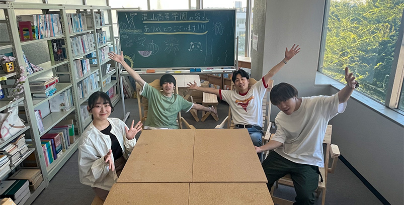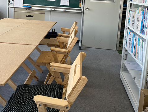 昨年、流山高等学園で介護等体験を行った際、工業技術科木工コースで実習をさせていただきました。そこで、生徒たちが加工して作った木製のテーブルや椅子などを見て、そのクオリティの高さに驚きました。さらに、実際に制作物を販売していることを知り、教職セミナー室での使用を提案しました。家具が届いて配置していてみると、部屋の雰囲気がガラッと変わり、とてもリラックスできる環境に整えることができました。流山高等学園のみなさん、ありがとうございます!