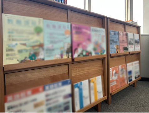 この教職セミナー室は、指導案の作成や教員採用試験の学修などに取り組めるほか、学科や学年、教科を超えて、学生同士が交流できる場にもなっています。さらに、中学校・高等学校で実際に使用されている各種教科書や辞書、教職関連の雑誌、教員採用試験の過去問題集や求人情報も閲覧することができます。