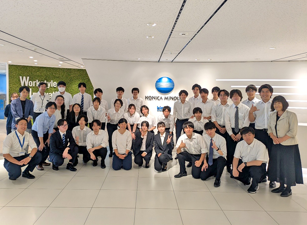 メディアコミュニケーション学部情報文化学科では、学科の専門分野(情報システム、情報デザイン、国際コミュニケーション)に関連する学びを深めるため、企業と連携した活動を行っています。7月31日(木)には就職活動を目前に控えた3年生が、コニカミノルタジャパン株式会社の本社(東京都港区芝浦)をゼミ活動の一環として訪問しました。