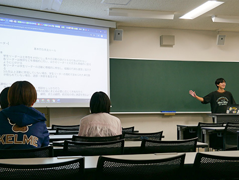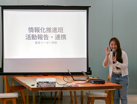 午後の部では、各班の代表学生が前期の活動報告と連携について発表しました。さらに、学生主体で設ける自主ルールの提案もあり、今後の学生リーダーとしての意識を高める機会となりました。その後は1年生が司会進行を務める、アイスブレイクゲームが行われ、学生リーダー間の懇親を一層深める場となりました。