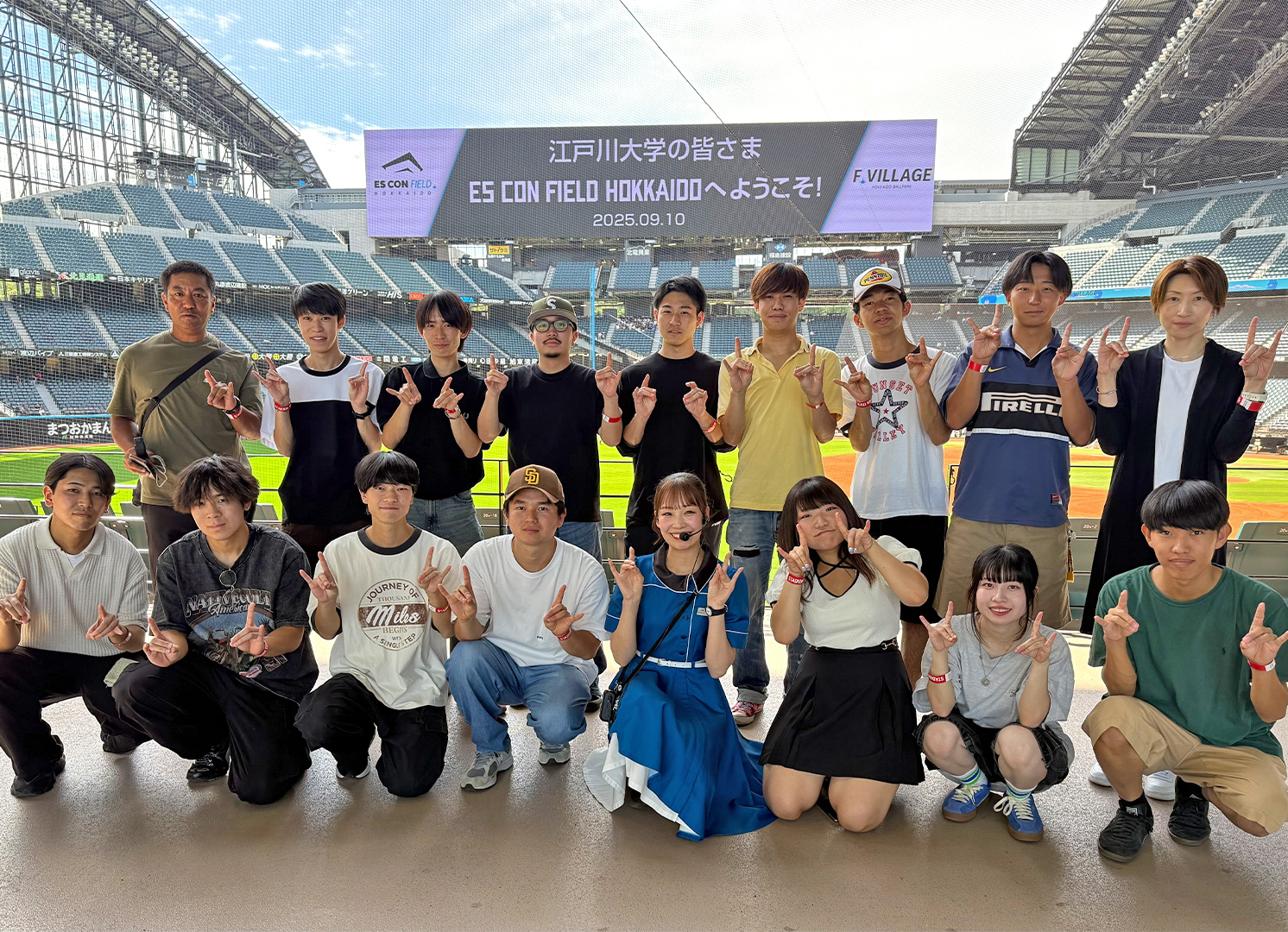 社会学部現代社会学科の末永尚准教授(専門分野:スポーツ科学)と野上玲子講師(専門分野:スポーツ哲学、スポーツ社会学)が、9月9日(火)から9月11日(木)にかけて、現代社会専門研修「北海道ボールパークFビレッジの振興から考えるスポーツとまちづくり」を実施しました。現代社会学科の学生14名が参加し、北海道ボールパークFビレッジ(北広島市)、札幌ドーム(札幌市)、札幌オリンピックミュージアム(札幌市)などを訪問しました。