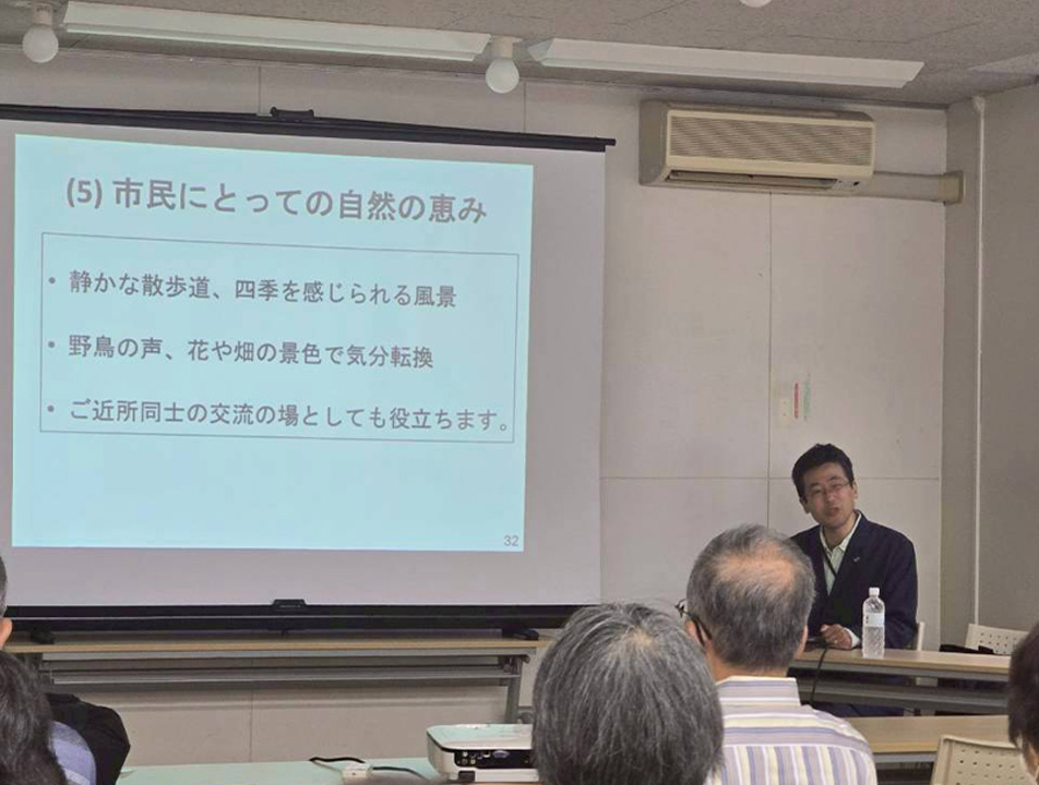 受講者の多くは長年流山市に居住する方々であり、講義を通じて地域の自然環境の変遷や現状について意見を交わし、受講者同士が地域の自然の魅力を共有し合う、貴重な学びの機会となりました。