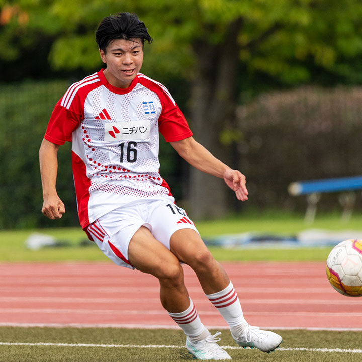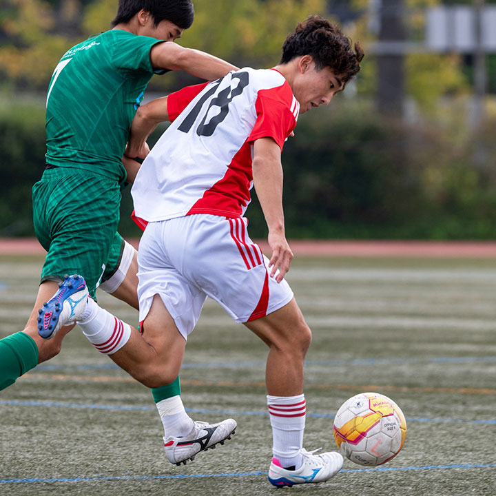 76分には清原龍聖(現代社会学科1年・北海道大谷室蘭高)に代えて吉川友翔(経営社会学科1年・日本体育大学柏高)、77分には須賀涼太(経営社会学科3年・東京学館浦安高)に代えて荒川夢汰(経営社会学科3年・西武台千葉高)を投入し、フレッシュな選手を送り込みました。菊池、安達、水口由翔(経営社会学科3年/北海道コンサドーレ札幌U-18)がゴールを狙いましたが、最後まで得点を奪えずに試合終了となりました。