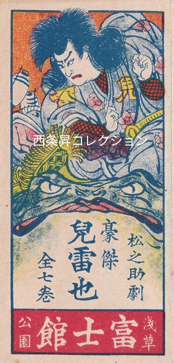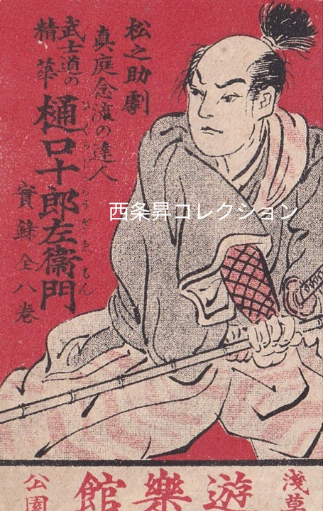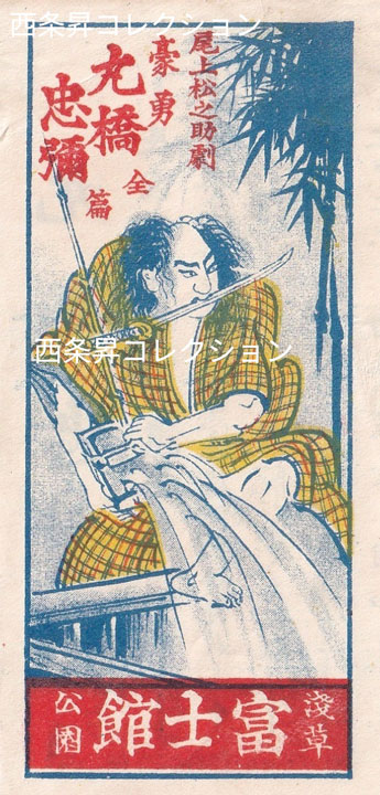 今回の展示では、日本最初の映画スターであり、チャンバラ映画の元祖として知られる「目玉の松ちゃん」こと尾上松之助の生誕150年にあたることにちなんで、大正期に松之助映画専門館であった浅草の「遊楽館」および「富士館」のイラスト入り宣伝ビラ(フライヤー)十数点を公開します。これらの資料は、映画が「活動写真」と呼ばれていた時代の熱気や、当時の日本映画文化を伝える貴重な資料です。