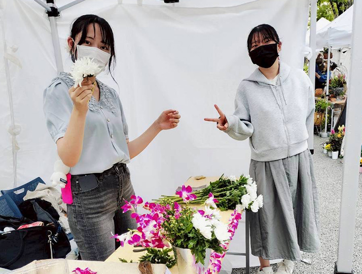 当日は、花の種類分けや「花摘み迷路」への花の設置、花を使ったかんざしの制作・販売などを担当。多くの来場者と交流しながら、笑顔のあふれるイベントづくりに貢献しました。