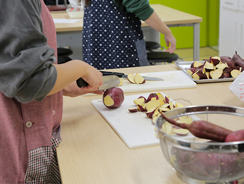 メディアコミュニケーション学部こどもコミュニケーション学科の2年生が、11月19日(水)、26日(水)の2日間、千葉大学環境健康フィールド科学センターで収穫したサツマイモを使用して調理実習を行いました。