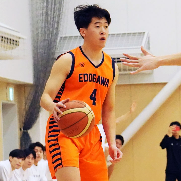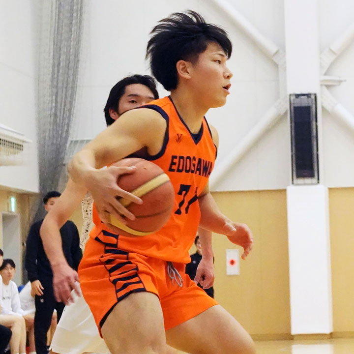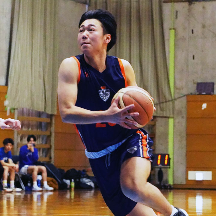 いつも応援してくださる皆様に、心より感謝申し上げます。リーグ最終戦となった順天堂大学との試合では、自分たちの強みである攻守の切り替えの速さを生かし、主導権を握って勝利することができました。チームとして狙い通りのバスケットを展開できた点は、大きな収穫です。一方で、リバウンドを相手に取られる場面が目立ち、攻撃機会を多く与えてしまいました。今後は、全員でリバウンドに参加する意識を高め、より安定した試合運びを目指していきたいです。来シーズンも、江戸川大学男子バスケットボール部への温かいご声援をよろしくお願いいたします。