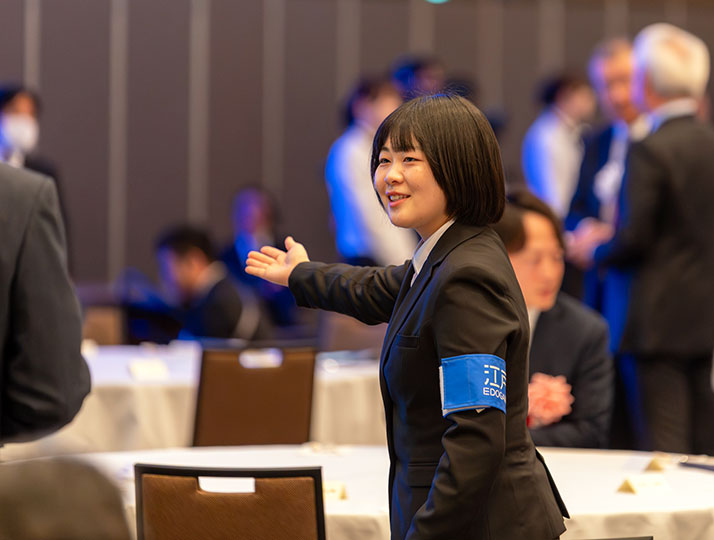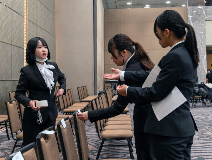 学生たちは、参列者座席の確認や名札配置、受付、式場内誘導などの業務を担当するほか、『国宝』で監督賞を受賞した李相日監督への花束贈呈という大役も担いました。