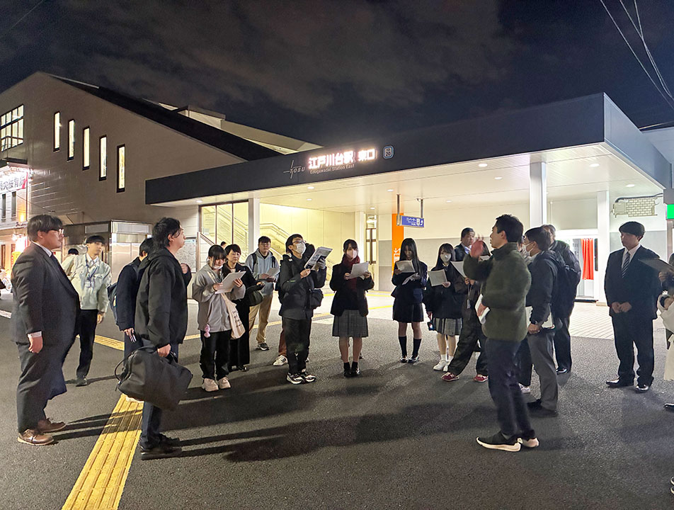 プロジェクトメンバーは、11月13日(木)に十太夫福祉会館および南流山福祉会館で、11月26日(水)には江戸川台駅周辺でフィールドワークを実施しました。また、12月16日(火)には、フィールドワークをもとに考案した地域創生のアイディアをグループごとに出し合うミーティングを江戸川大学駒木キャンパスにて行いました。