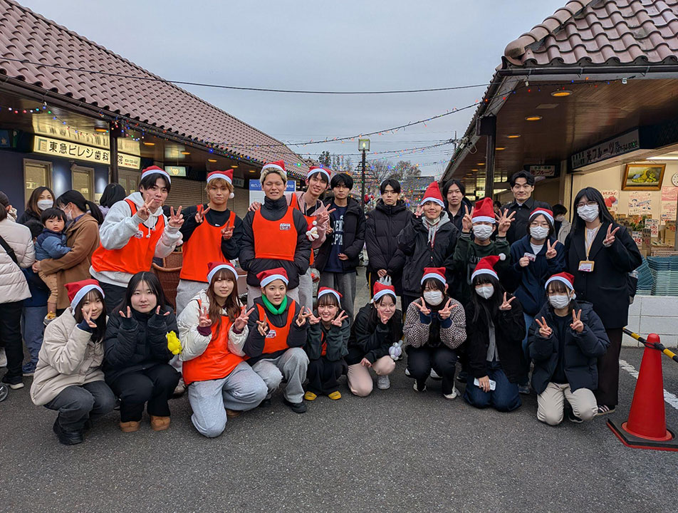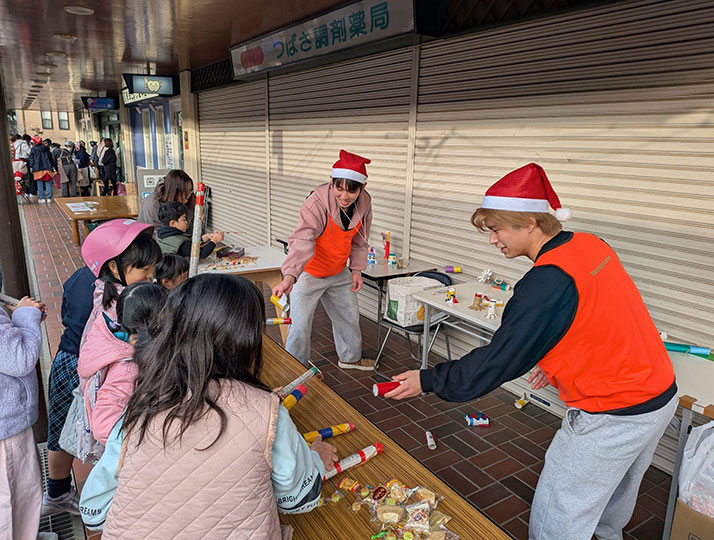 メディアコミュニケーション学部こどもコミュニケーション学科の1年生9名が柏市花野井の柏ビレジ商店街内(受入れ任意団体柏ビレジ・イベントサークル)で行われたイベント「ファミリークリスマス」にボランティアとして参加しました。