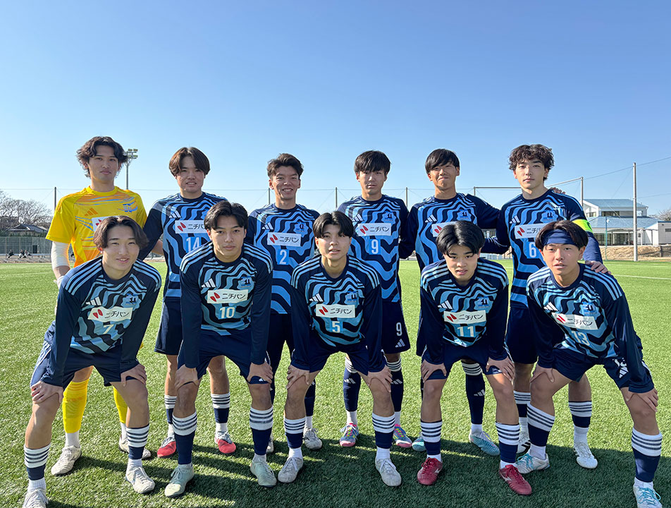 千葉県第1種サッカー選手権大会(天皇杯千葉県予選)に出場している江戸川大学フットボールクラブは、1月18日(日)に行われた1次予選トーナメントで社会人チームのPRIMEIRO市川浦安と対戦し、10対0で勝利しました。