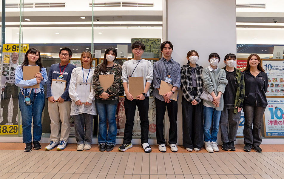 江戸川大学メディアコミュニケーション学部の「21世紀メディアパーソン育成プログラム(愛称:ポプニア21)」に参加する学生が、紀伊國屋書店流山おおたかの森店で「ブックハンティング」を行いました。選書された本は、江戸川大学総合情報図書館に配架されています。