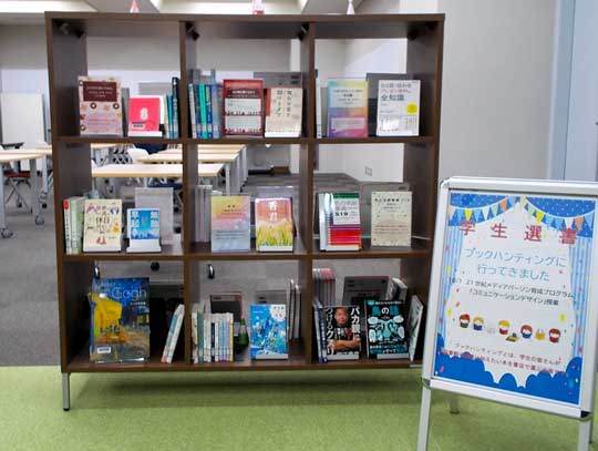 選書にあたっては、マンガを含め、ジャンルに制限を設けなかったことで、それぞれの個性や関心が反映された多彩な選書となりました。21世紀メディアパーソン育成プログラム参加学生の活動拠点である「B.コモンズ」への配架も想定しているため、リラックスした空間に合う美術書や短編集、エッセイ集などを選ぶ学生が見られました。また、「コミュニケーションデザイン」を学ぶ学生らしく、コミュニケーションスキルや情報技術の習得に役立つ書籍を手に取る姿も多く見られました。