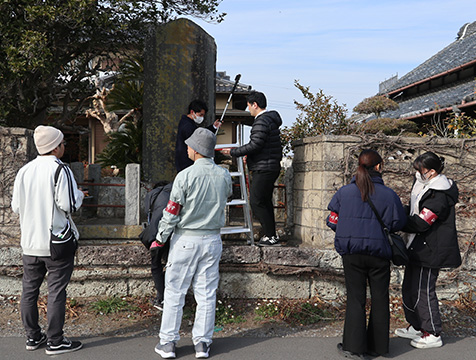 メディアコミュニケーション学部こどもコミュニケーション学科の中島金太郎講師(専門分野:博物館学史、歴史考古学)と、同学部情報文化学科の山口敏和准教授(専門分野:情報教育・教育工学)が、2月13日(金)から15日(日)にかけて、茨城県稲敷郡河内町で文化財の三次元計測技法を用いた調査を実施しました。本調査には、学芸員課程履修者のほか、有志学生を含む計6名も参加しました。