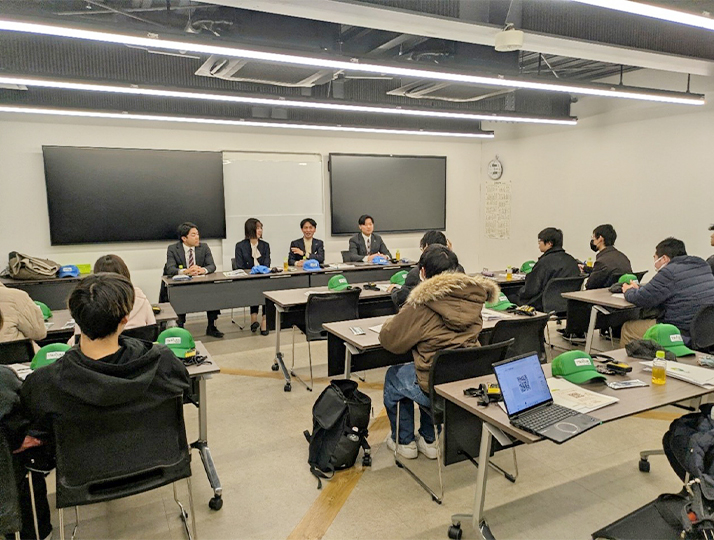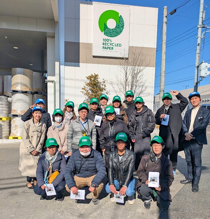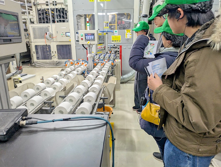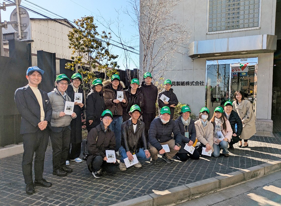 メディアコミュニケーション学部情報文化学科では、学科の専門分野(情報システム、情報デザイン、国際コミュニケーション)に関連する学びを深めるため、企業と連携した活動を行っています。2月9日(月)には、企業や学校から排出する紙資源を再生するSDGs活動や、企業としてのDXに特色のある「鶴見製紙株式会社」の本社工場を訪問しました。見学では工場でのさまざまなデータの流れや、センサを活用した再生紙の作業工程を丁寧に見せていただきました。見学後には、社員の方々とデータサイエンスや企業での働き方についてディスカッションを行いました。