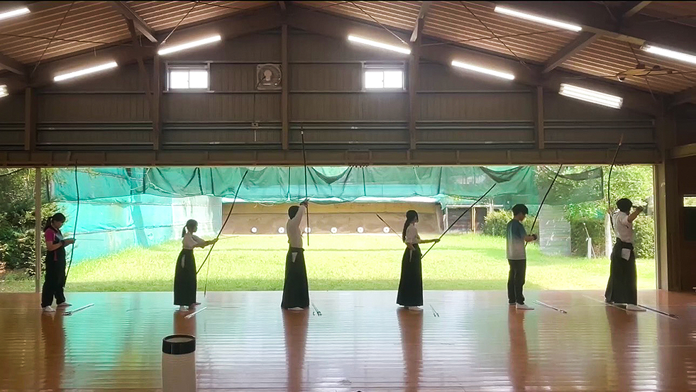 春夏秋冬の長期休みには合宿を実施し、未経験者も実際に弓を引く体験ができます。
