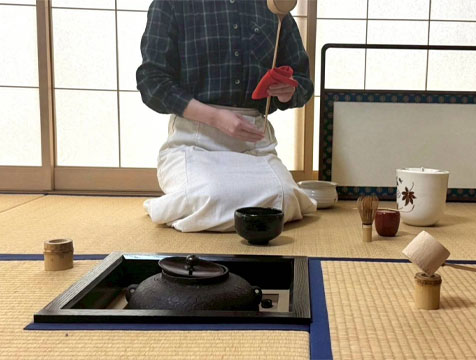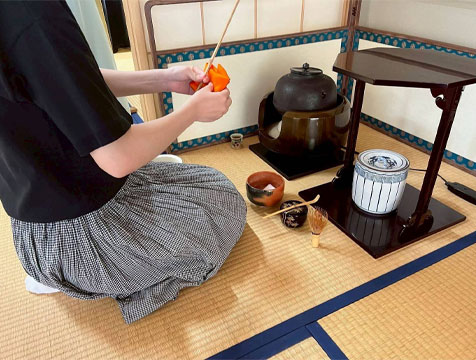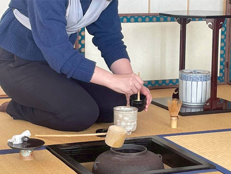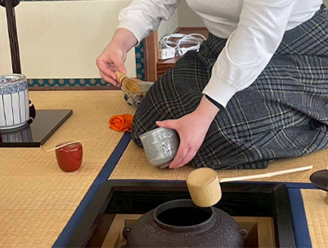 「2023年11月から活動を再開し、新たなメンバーで毎回楽しく活動しています。お茶をうまくたてられるととてもうれしいです!ぜひ茶道に興味をもった方は来て下さい!!」