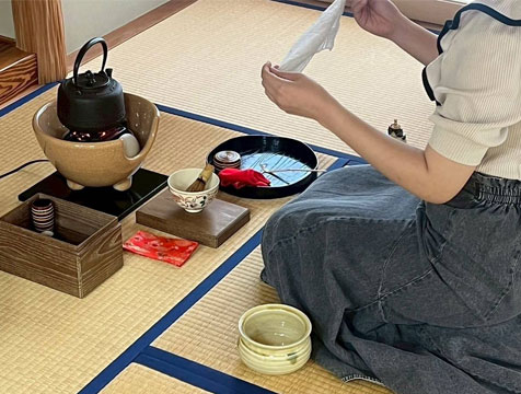 「ぼくは高校生のときに茶道部に所属していましたが、コロナ禍により、大学の茶道同好会は活動していませんでした。2023年の11月から再び活動が始まり、4年ぶりに茶道を再開しました。ぼくは男子ですが、性別は関係ありません。茶道をやってみたいという方!ぜひ、入部をお待ちしております。」