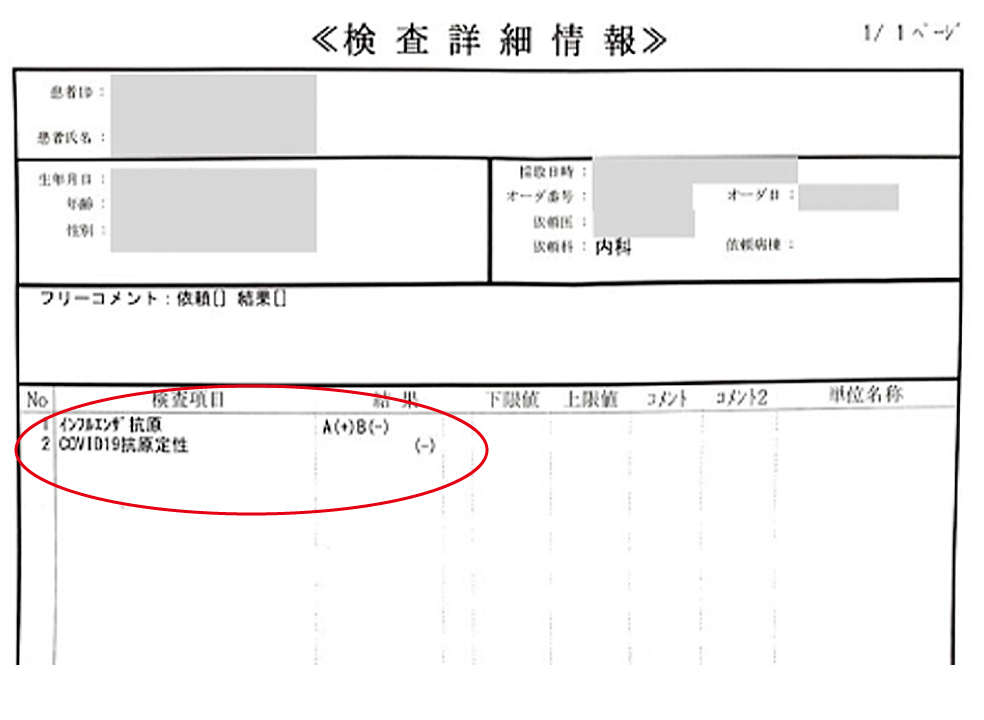 例:「SARS-COV-2」「インフルエンザ」と記載があるもの